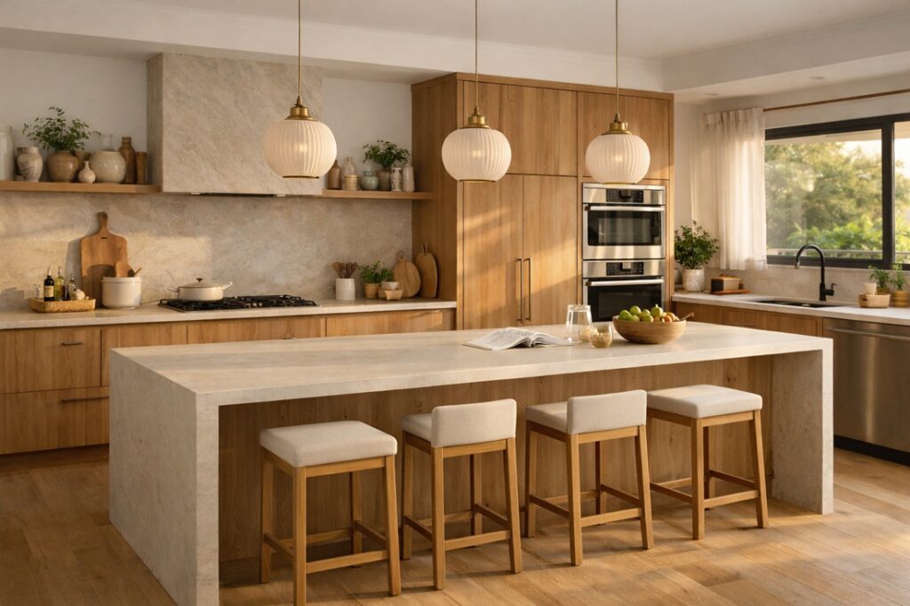 A kitchen island with seating works best when it supports the way the kitchen is used, not just how it looks in photos. It is especially useful in homes where the kitchen is part of everyday family life and where people naturally gather such as cooking, preparing food, or entertaining.